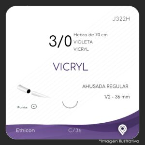 $6,007.01J322H | PGLA90 | CALIBRE 3/0 | VICRYL | SR36303 | C/36 | Marca: Ethicon